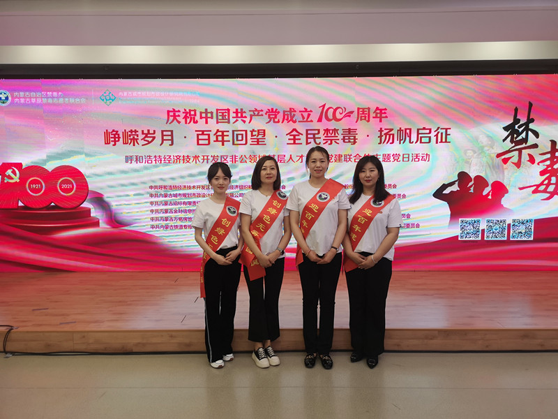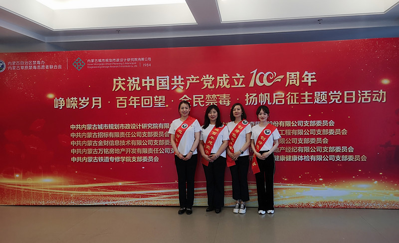 2021年6月3日是虎门销烟182周年纪念日。为深入学习贯彻习近平总书记关于禁毒工作的重要指示精神,聚焦中国共产党成立100周年主题主线,高站位落实禁毒工作责任,着力打造共建共治共享的毒品治理格局,6月3日上午,由自治区禁毒办、自治区党委宣传部、自治区党委政法委、自治区草原禁毒志愿者联合会、内蒙古城市规划市政设计研究院有限公司、呼和浩特市禁毒办联合举办的“峥嵘岁月,百年回望,全民禁毒,扬帆启征”全民禁毒宣传月启动暨全区禁毒巡回宣讲启征仪式,在内蒙古规划院隆重举行。我公司党员集体参加了此次活动。