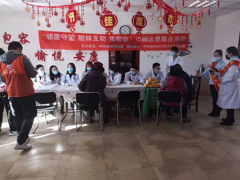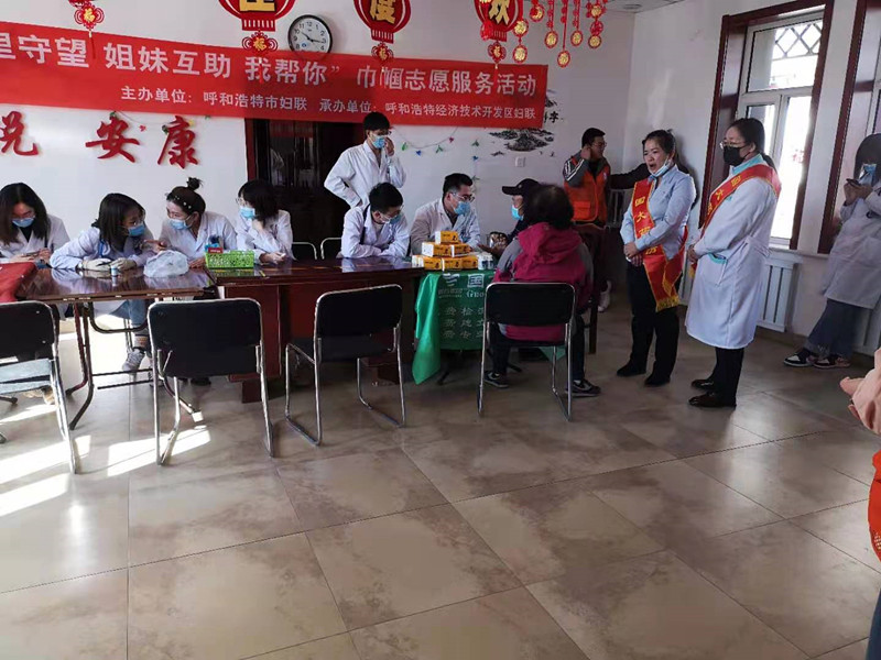 与妇联一起组织参加义诊与剪头发的社区活动